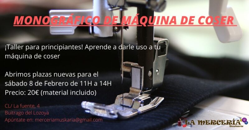 Dado el éxito del 1º taller monográfico para principiantes de máquina de coser, abrimos plazo para que apoveches la oportunidad de aprender a usar tu máquina. Sábado 8 de Febrero de 11h a 14h en La Mercería de Buitrago. ¡No te lo pierdas!